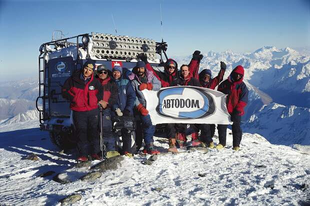 Готовились год. Сначала они проехали половину и вернулись. Это была обкатка автомобиля. Затем они всё тщательно доработали и 1 августа 1997 года начали восхождение на автомобиле. Через 1,5 месяца команда добралась до вершины, но спуститься автомобилю было не суждено. Вертолётом его было тоже не снять, а по дороге обратно машина разбилась. Все остались живы. Рекорд принадлежит альпинистам Константину Брускову, Александру Ковалю, Александру Копылову, Андрею Леонтьеву, Василию Елагину, Олегу Богданову, Николаю Никульшину и Сергею Бабенкову.