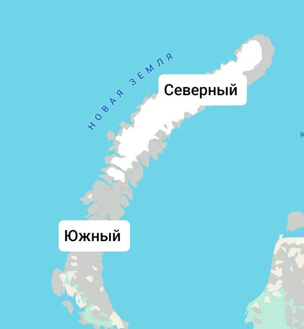 Новая Земля - это два больших острова, Северный и Южный.