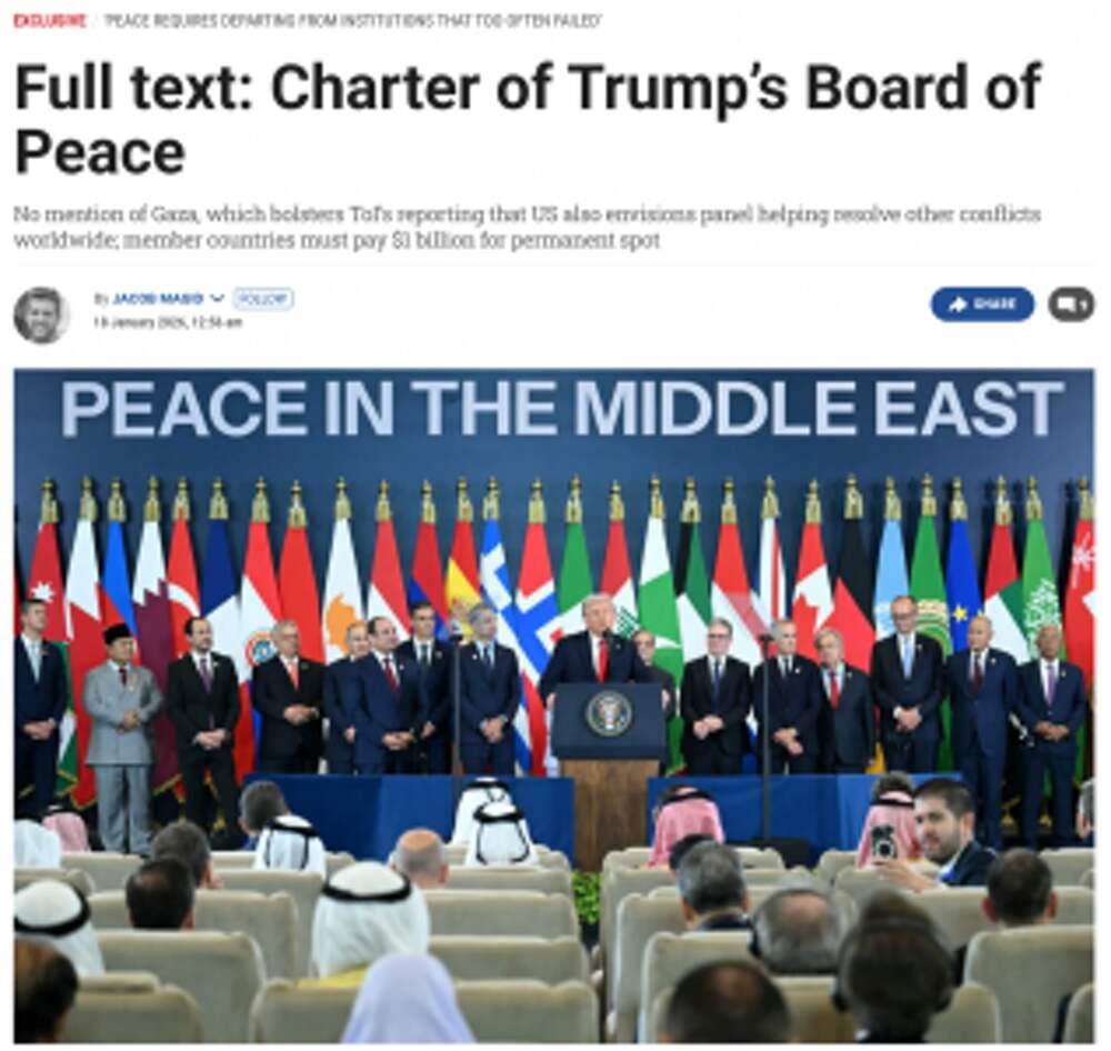 GORA - Олег Ладогин The Times of Israel: Ниже приводится полный текст устава Совета мира — международной организации, возглавляемой президентом США Дональдом Трампом. Этот устав был приложен к приглашениям, разосланным десяткам мировых лидеров, которых попросили присоединиться к Трампу в составе... Далее