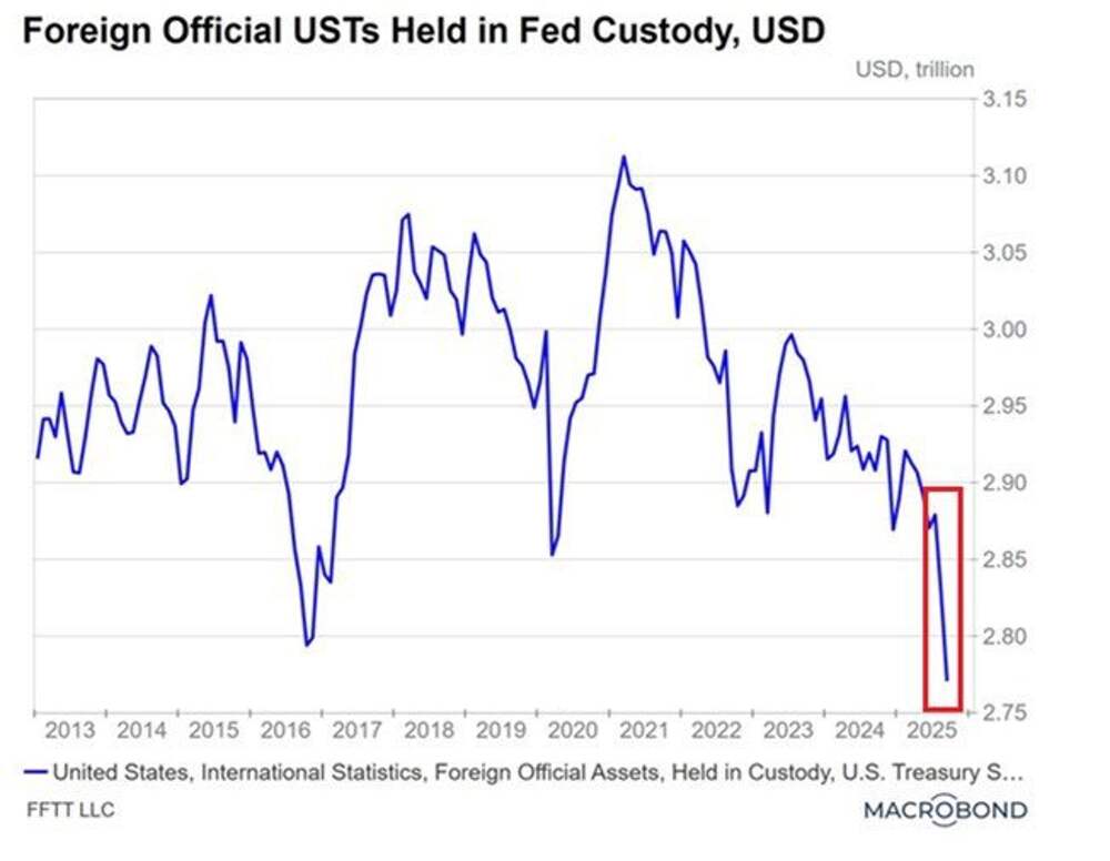 9 ноября 2025 года: Золото — 4001 доллар. Долг США — 38,02 триллиона долларов. Процентные платежи — 1,2 триллиона долларов в год. Инверсия, которую никто не ожидал, только что произошла. Центральные банки впервые с 1971 года имеют больше золота, чем казначейских облигаций США. Золото: 23%.