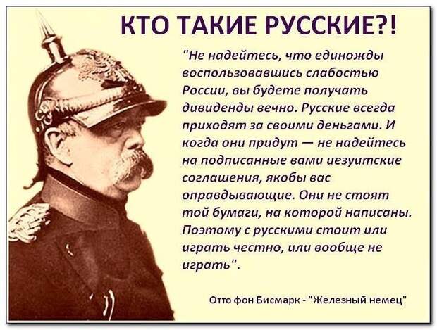 Прав был "железный канцлер", прав на "все сто"! С русскими надо играть честно, либо скромно отойти в сторонку, и вовсе не играть.