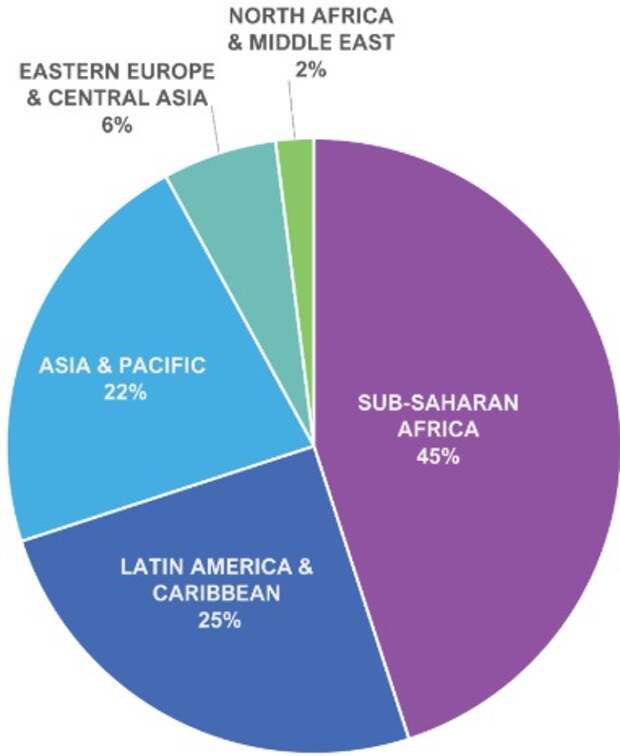 Относительное большинство финансирования ушло в страны Чёрной Африки (45%), именно там самая высокая в мире рождаемость.