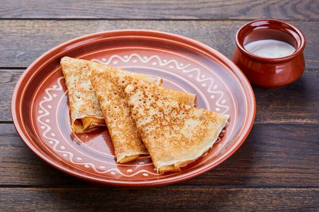- Блины подавали с каймаком (густыми сливками) и медом;