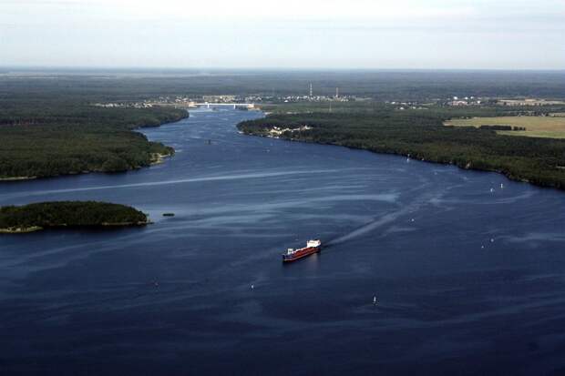 Река Шексна, Вологодская область. Это уже пример антропогенного (рукотворного) изменения направления, а именно создание Рыбинского водохранилища.