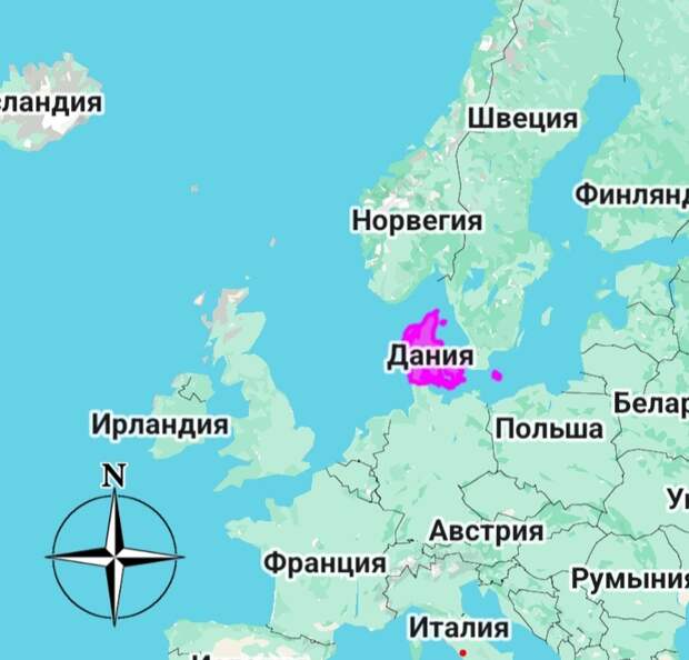 Дания известна тем, что малюсенькое королевство владеет огромной Гренландией.