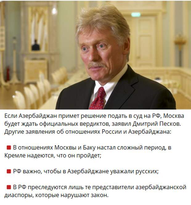 "Ребята, давайте жить дружно!" Главное из заявлений пресс-секретаря президента РФ Дмитрия Пескова по ситуации с Азербайджаном: