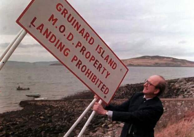 Туда на лодках были доставлены овцы, которых загнали в так называемую "зону воздействия", а затем засыпали снарядами с сибирской язвой. Эксперимент прошёл успешно. Проект был запущен, но к тому времени как были сделаны пять миллионов лепешек с сибирской язвой, война уже закончилась, и британские военные засекретили данные, открыв миру правду только полвека спустя.