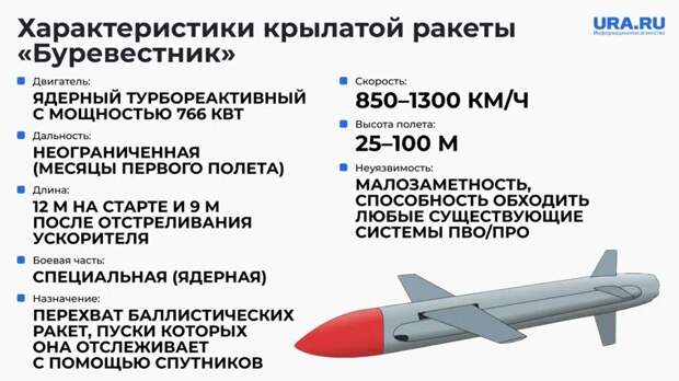 Теперь сыграем в военную занимательную арифметику. Многие шпаки назвали «Буревестник» дозвуковой ракетой, разделив 14 тысяч километров на 15 часов полёта, скорчили лимонную физиономию и сложив аристократические губки гузкой.