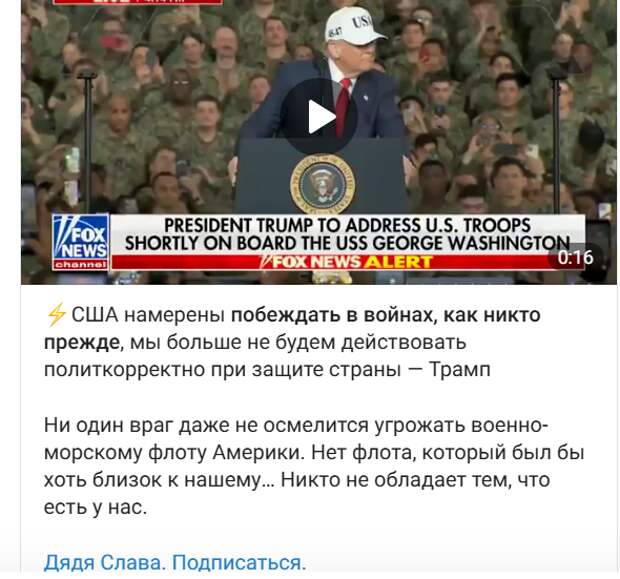 Имея принятый в 2020-ом доктринальный документ «Мгновенного глобального удара». Не оборонительного характера. А краткосрочного проведения военных действий глобального масштаба с применением ядерных и высокоточных обычных средств поражения. Космических, информационных и специальных операций в интересах уничтожения наиболее важных объектов противника ради завоевания стратегического превосходства.
