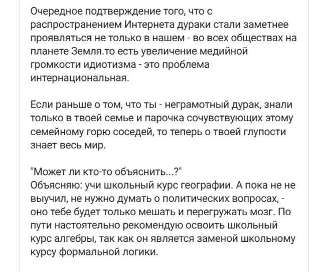 И вот эти существа лезут решать украинский вопрос. Мы им про высокие материи и глубину проблемы, а они...