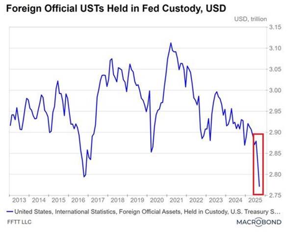 Иностранные держатели слили казначейские облигации на 518 миллиардов долларов с 2021 года. Только в этом году они купили 500 тонн золота.