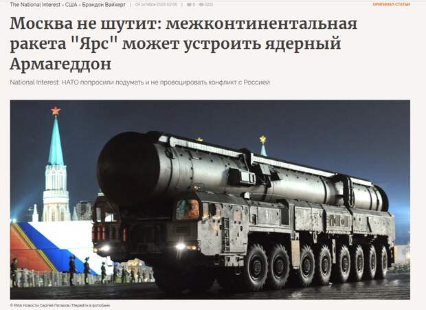 Наличие в арсенале России такой системы, как "Ярс", гарантирует, что НАТО сто раз подумает, прежде чем начнет слишком давить на Кремль.