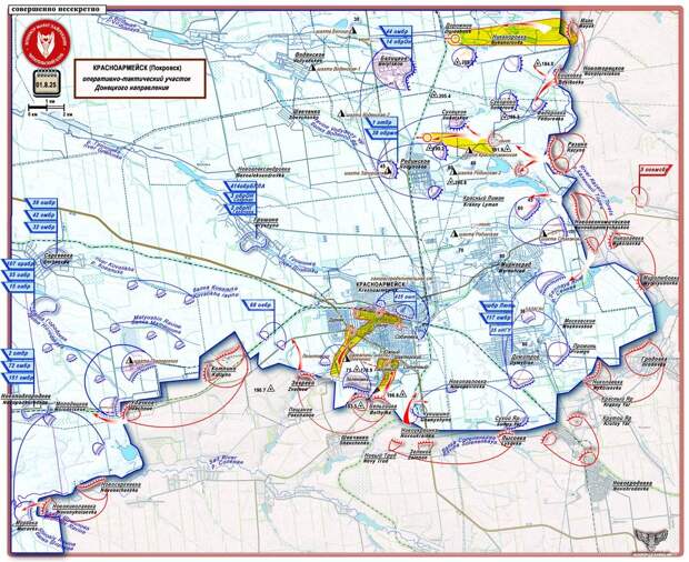 Наши не только разрезали «Покровск» пополам, но и дальше дробят его на части, как праздничный торт (есть более подробные карты, но не покажу). Стремительно превращая его обратно в Красноармейск.