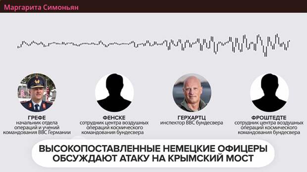Подробности читайте в материале Царьграда.Напомним, 1 марта канал RT разместил 16-минутную аудиозапись совещания офицеров бундесвера. В ходе этого разговора несколько высокопоставленных начальников обсуждали вопрос организации удара немецкими ракетами по Крымскому мосту. И это не были фантазии подвыпивших вояк. В ходе разговора упоминалось, что вопрос в проработке у министра обороны Бориса Писториуса и с ним запланированы по этому поводу встречи.
