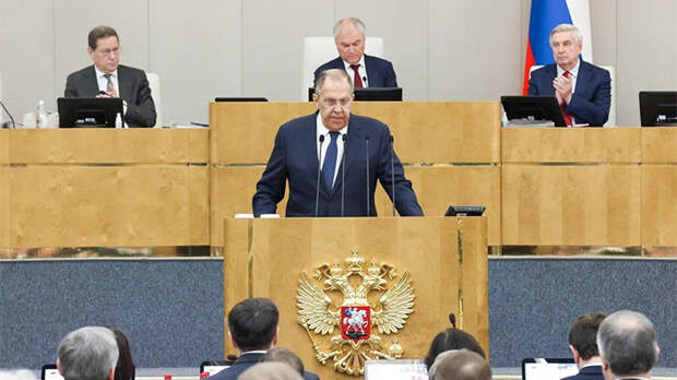 Выступление Сергея Лаврова на правительственном часе в Госдуме. Фото: ТГ-канал "МИД России"