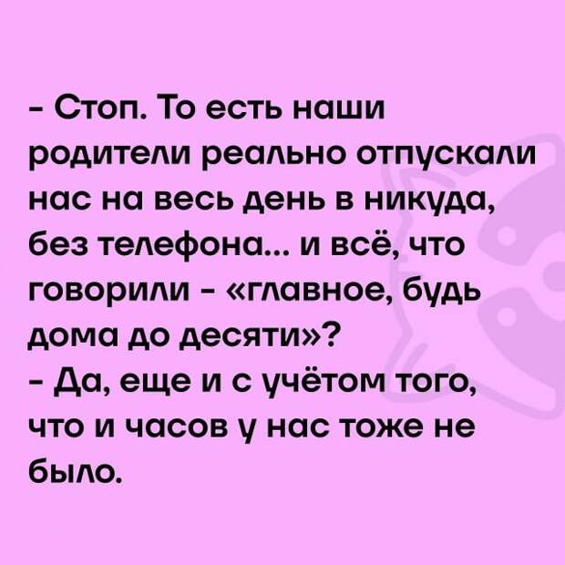 Вот ведь что интересно - получается, что в те времена, когда не было ювенальной юстиции, толерантности, торжества либеральных ценностей, учебных программ, которые созданы для того, чтобы ни в коем случае не причинить стресса дитятку, законов, которые любое физическое действие по отношению к ребёнку считают криминалом, ребёнка спокойно можно было отпустить на улицу.