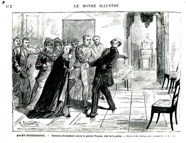 Террористка выстрелила в Трепова в упор. Пуля попала чиновнику в левый бок, ранение оказалось несмертельным. Поступок свой Засулич, с юности участвовавшая в народнических кружках, объяснила просто: она мстила за политзаключённого Боголюбова, которого Трепов приказал выпороть, хотя такие наказания в ту пору в России уже были запрещены. После этого народовольцы тут же бросили жребий на спичках, кто из них убьёт злодея-градоначальника.