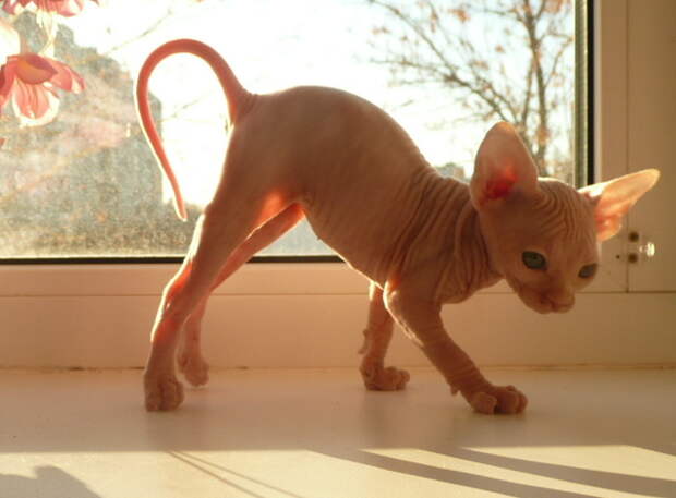 Моя подруга купила лысую кошку — канадского сфинкса, девочку. Покупала зимой. К лету киска уже подросла и любила сидеть на окне, наблюдая за птичками и подмявкивая. Лето. Жара. 2010 год. Приходит подруга с работы и видит, что её кошка лежит в неестественной позе на подоконнике: вся красная, глаза «в кучку», как при содружественном косоглазии, язык вывалился изо рта, будто её на сковороде поджарили.