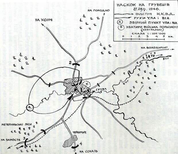 Карта совместного налета на г. Грубешов отрядов УПА и ВиН