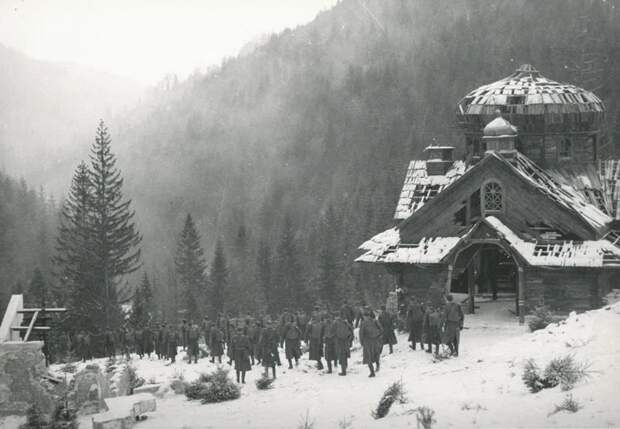 Радянські військові та місцеві жителі оглядають тіла убитих українців у Верховині після нападу поляків 6 червня 1945 року (Советские военнослужащие и местные жители осматривают тела убитых украинцев в Верховине после нападения поляков 6 июня 1945 года)