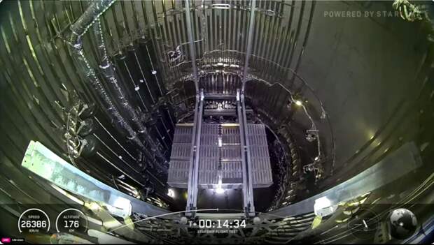 Понимая, что "Старшип" не выйдет на околоземную орбиту и не сможет запустить реальные спутники, в грузовой отсек были загружены симуляторы, которые про аналогии со Старлинком, Starlink (Звёздная связь), назвали Дамблинками, Dumblink (Тупая связь). Их было 8 штук, общей массой 15,2 тонны. Наверное, можно было порадоваться за "Старшип", что хоть 10% от заявленной грузоподъёмности он всё-таки поднимает, так ведь не поднял же на орбиту, "дамблинки" не стали спутниками. Эти симуляторы, выпущенные из грузового отсека, через несколько минут сгорели в атмосфере.