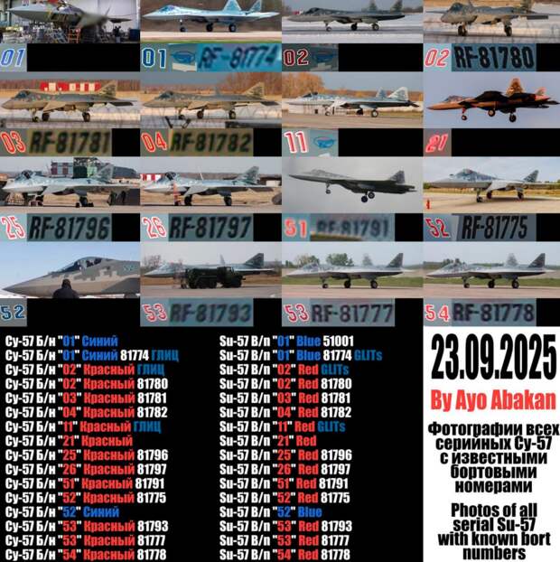 Но главный интерес в том, что речь идет о непосредственно строевых истребителях, уже замеченных и зафиксированных в ходе учебных и боевых полетов.Итак, судя по подсчётам специалистов Aviation Geek Club в этом году на фотографии и видеролики попадало не менее 32 единиц Су-57. Речь, повторюсь, идет только о серийных машинах, не имеющих отношения к предсерийной партии Т-50. Считается, что в этом году ВКС могут получить ещё от 12 до 18 машин, доведя общее количество до более четырех десятков и даже до полусотни.