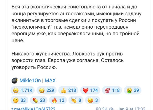 На рану добавили соли немецкие СМИ. Согласно изданию Münchner Merkur, "Германия, столкнувшись с последствиями отказа от атома и российской нефти, вынуждена возвращаться к прагматичным (то есть не зеленым) источникам энергии, чтобы обеспечить свою конкурентоспособность". DW*, в свою очередь, сообщила, что "Германия переживает затяжной экономический спад, надежды на быстрое восстановление угасают".