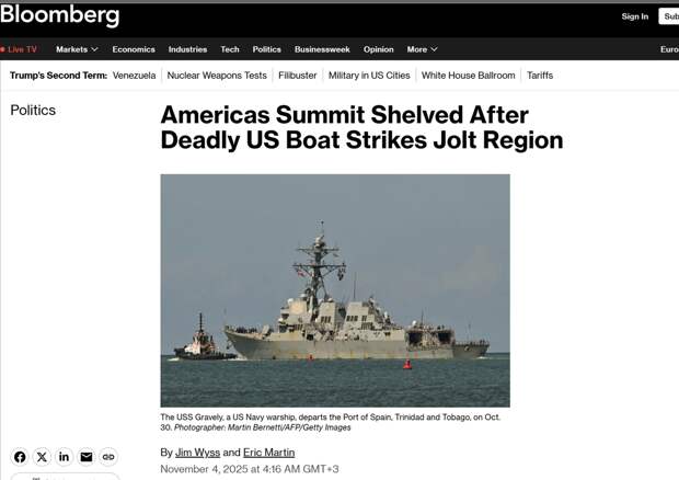 Как там получится с давлением пока не ясно. Зато стало известно об отмене саммита Америк. Мероприятие было запланировано в Доминиканской республике, но власти объявили о переносе на следующий год из-за растущей напряжённости и действий США в регионе (имея ввиду атаки на суда якобы наркоторговцев).