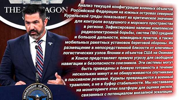 Пентагон выступил с псевдоаналитическим докладом: Россия якобы превращает Курилы в «узел стратегического давления» на Японию и базы США в регионе. Особо подчёркиваются мобильные ЗРК, системы слежения и радиолокационные платформы. Истерика сопровождается угрозами — но завернута в обёртку «обеспокоенности».