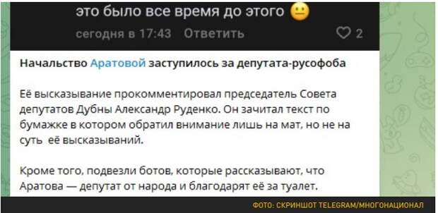 По сути, Аратова считает, что весь народный гнев вызван был лишь грубой и матерной формой подачи. Сама суть, по мнению депутата, правдива. Очевидно, что парламентарий в итоге ничего и не поймёт, что ещё раз указывает на гигантскую дистанцию между самой Аратовой и народом, который она якобы представляет.