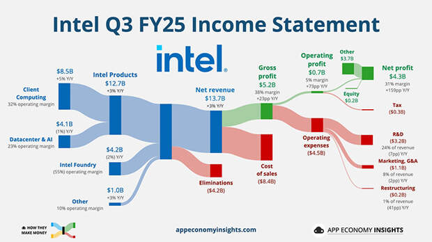 - Производственный бизнес Intel пока не достиг нужного масштаба и продолжает приносить убытки ($2,3 млрд за квартал). Несмотря на запуск фабрик под техпроцесс 18A, компания будет расширять их мощности только при подтверждённом внешнем спросе.