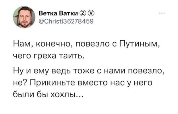 Зато многие охотно верят, что Путин всё сливал, сливает и продолжает сливать, гадит всем в подъездах, просрал все полимеры, плохо воюет, неправильно управляет, его все обманывают, он добренький дурачок, но при этом у него дворцы по всему миру и триллиарды, распиханные по карманам.