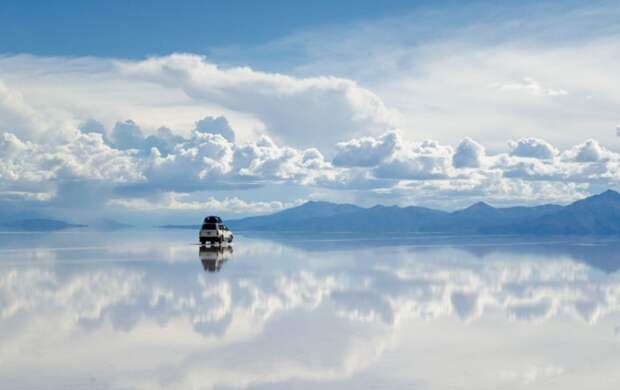 Представьте место, где горизонт исчезает, а земля превращается в гигантское зеркало, отражающее облака так, что невозможно понять, где кончается небо и начинается земля. Это солончак Уюни — самое большое в мире зеркало природы, затерянное в боливийских Андах.