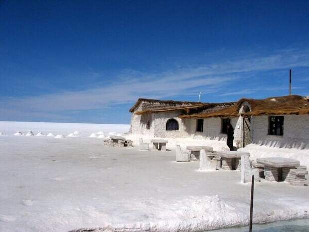 Солончак Уюни — это бывшее дно древнего озера, которое высохло 40 000 лет назад, оставив после себя гигантский слой соли (до 10 м в глубину).