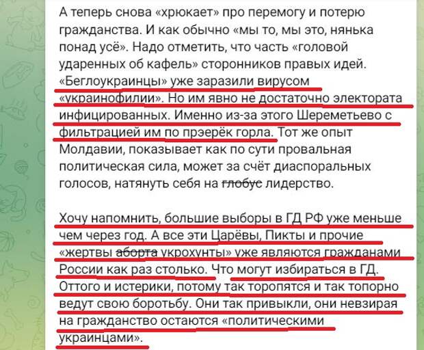 Выше я уже сказал, что у подавляющего количества российских граждан сильна прививка от нацизма, и потому "крысам" нужны люди. Люди, для которых Россия - ком в горле, успешный старший брат, новая халявная сиська взамен иссякающей американско-европейской. Именно поэтому "крысы" давят на Шереметьево и отмену фильтрации. Именно поэтому активно продавливается нарратив о том, что только на новых территориях - самые лучшие "русские". Устроить майдан в России могут только те, кто устроил его там, на Украине.