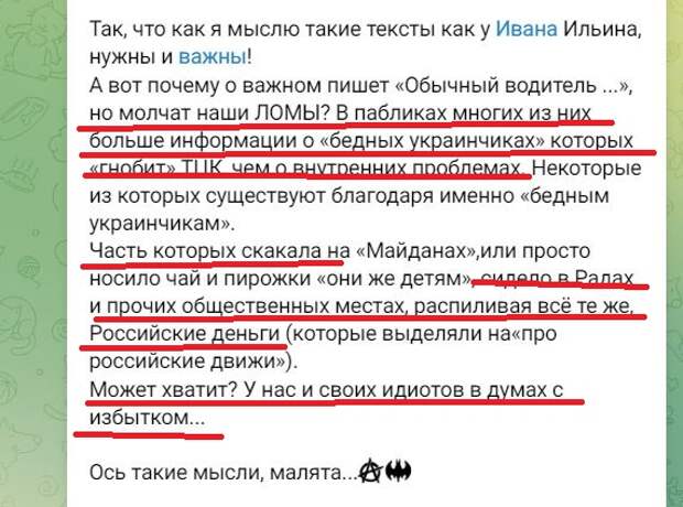 Назовем вышеупомянутую группу условно "крысами". По аналогии с грызунами, разносчиками чумы, а нацизм называли именно чумой, коричневой чумой. Собственно цвет тоже очень характерен для того дерьма, что выливают на страницы своих ТГ-каналов эти "крысы". Просто еще раз несколько тезисов, от которых данная группа приходит в состояние болезненного аффекта.
