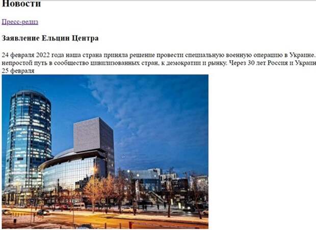 Скриншот заявления Ельцин Центра. Вот такое они писали в начале СВО. И продолжали спокойно существовать. Источник: web.archive.org