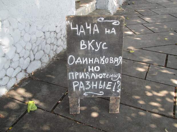 Только один раз мне удалось попробовать настоящего абхазского вина из настоящей винодельни, но располагалась она в такой... мира, что лучше даже не вспоминать, как туда попадают люди. И, кстати, за это вино пришлось заплатить примерно столько же, как за хорошее французское.