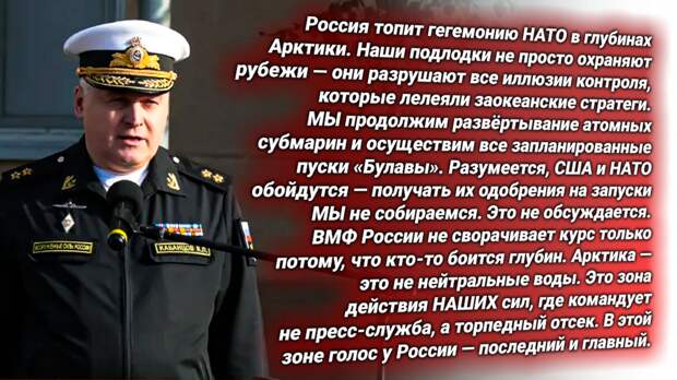 НАТО направила России официальные требования: сократить активность атомного подводного флота в северных морях и отказаться от запусков МБР «Булава». Альянс признал: стратегический баланс смещён. Подводные силы ВМФ России полностью вышли из-под контроля Запада и превратили Арктику в зону недосягаемости.
