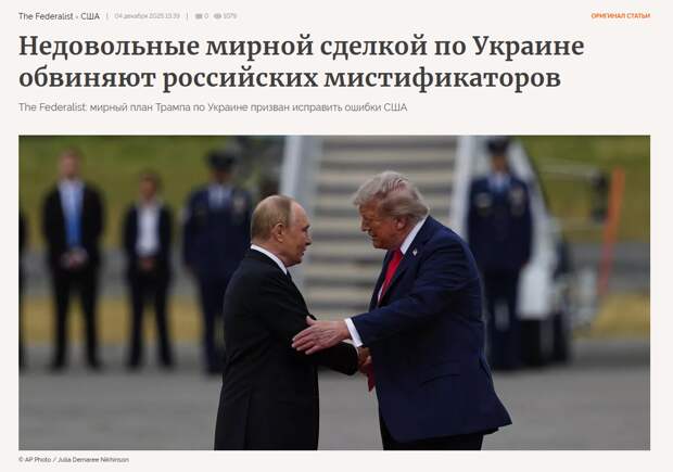 Запад был удивлен мирным планом Трампа, пишет The Federalist. Но история конфликта на Украине показывает, что именно США и Европа должны понести за него ответственность. Русофобия, клевета, фальсификации — они обязаны расплатиться за эти ошибки.