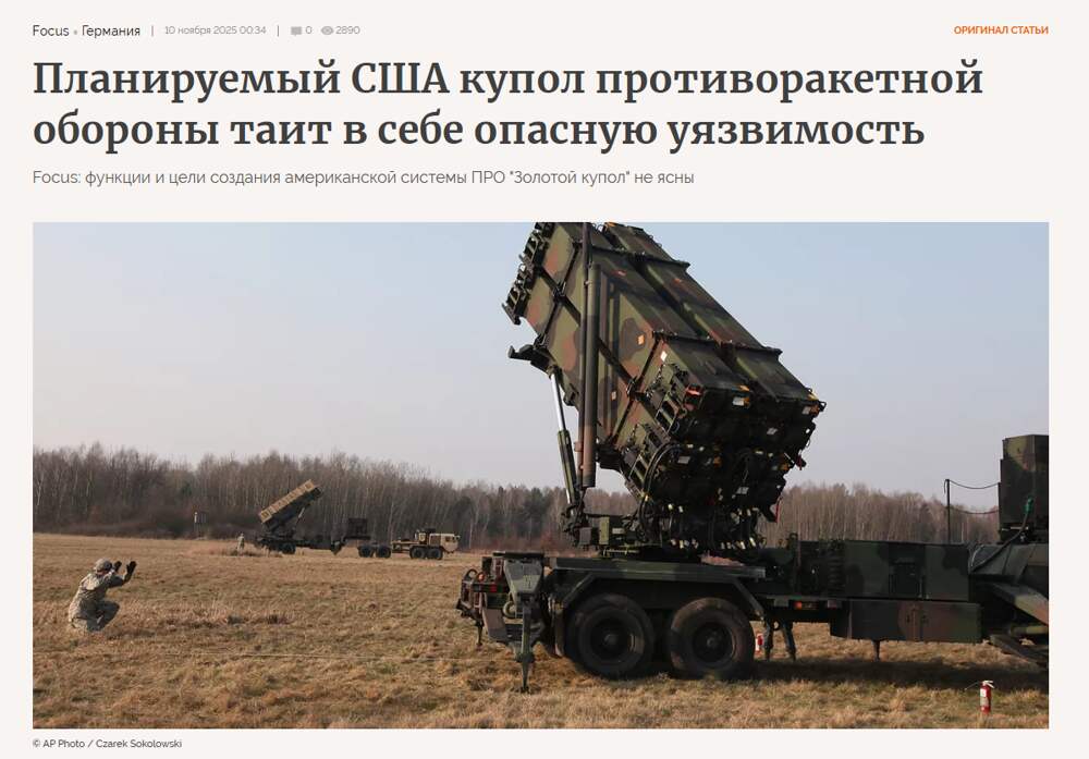 Детали задуманного Трампом "Золотого купола" остаются расплывчатыми, пишет Focus. До сих пор не понятны масштабы, функции и цели создания этой системы ПРО. Что если затея выродится в дорогостоящий и опасный проект, служащий лишь утолению амбиций, задается вопросом автор. США хотят в будущем иметь